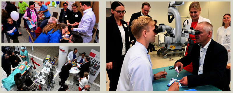 Von OP-Roboter über Skills-Lab bis hin zur Teddyklinik: Die Bandbreite des Programms war groß. In der Urologie durften Gäste das OP-System DaVinci selbst steuern, in der Unfallchirurgie am Modellknochen bohren und erfahren, wie Brüche heute versorgt werden. Geriatrie und Physiotherapie luden dazu ein, „Alter zu fühlen“, während an der Reanimationspuppe das richtige Tempo der Herz-Lungen-Wiederbelebung geübt wurde – ganz nach dem Motto: Leben retten zählt.