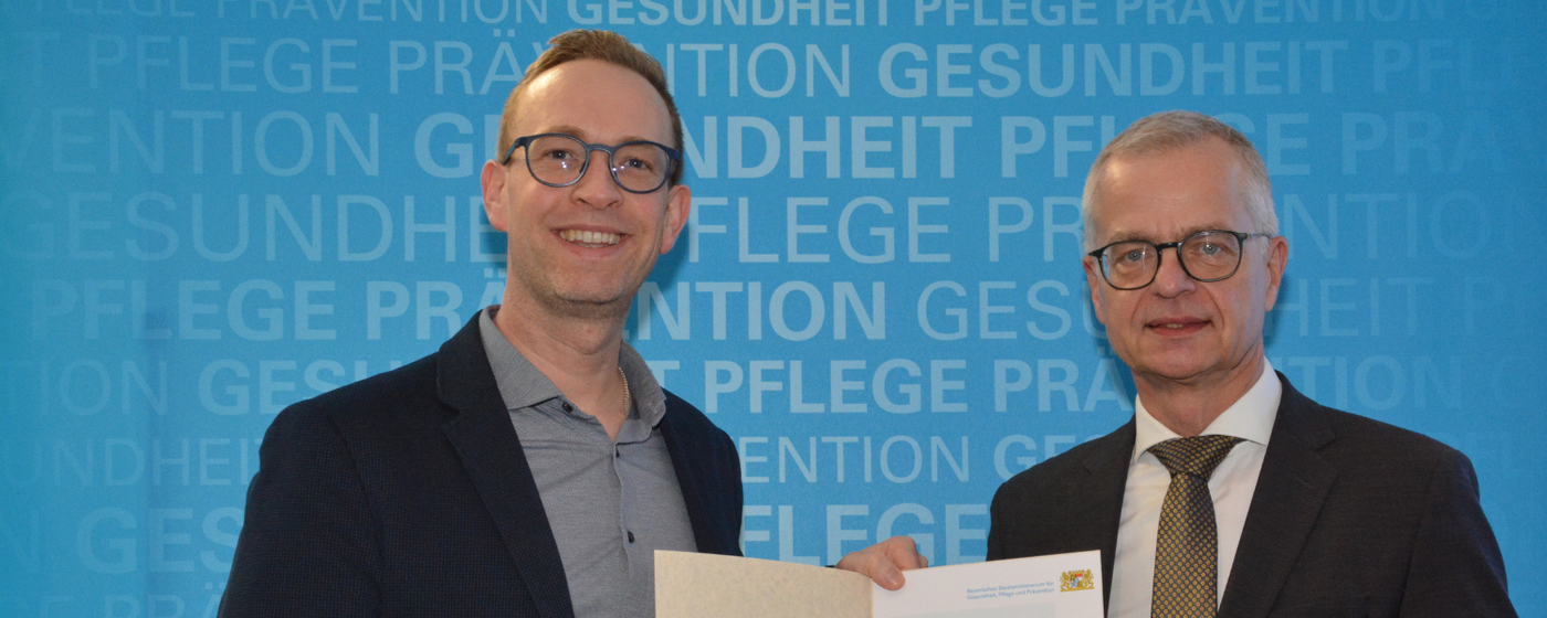 Die Verleihung der Urkunde übernahm der Amtschef des Staatsministeriums Dr. Rainer Hutka. Gesundheitsministerin Judith Gerlach ließ ebenfalls herzliche Glückwünsche übermitteln. Im Mittelpunkt der Preisverleihung stand die Wertschätzung der bedeutenden Arbeit, die die Pflegeschulen leisten, um dem Pflegenotstand entgegenzuwirken und vor allem junge Menschen für die Pflegeausbildung zu begeistern. „Mein Dank gilt dem gesamten Team sowie den Schülerinnen und Schüler für das herausragende Engagement und die hervorragenden Ergebnisse“, so Felix Schappler, Schulleiter der Berufsfachschule für Pflege, im Rahmen der Veranstaltung in München.