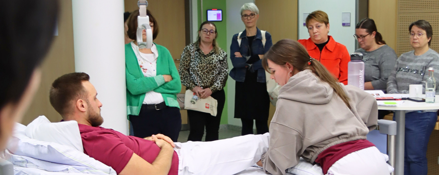 Im Anschluss ging das Programm auf den Workshop-Teil über, der die Möglichkeit bot, die Inhalte der Vorträge praktisch zu vertiefen. Aufgeteilt in drei Gruppen wurden die Teilnehmenden in die Benutzung einer Schmerzpumpe eingewiesen, konnten ihre Kenntnisse in Bezug auf die Beurteilung und Dokumentation von Schmerzen ausbauen und physiotherapeutische Methoden zur Schmerzlinderung ausprobieren.