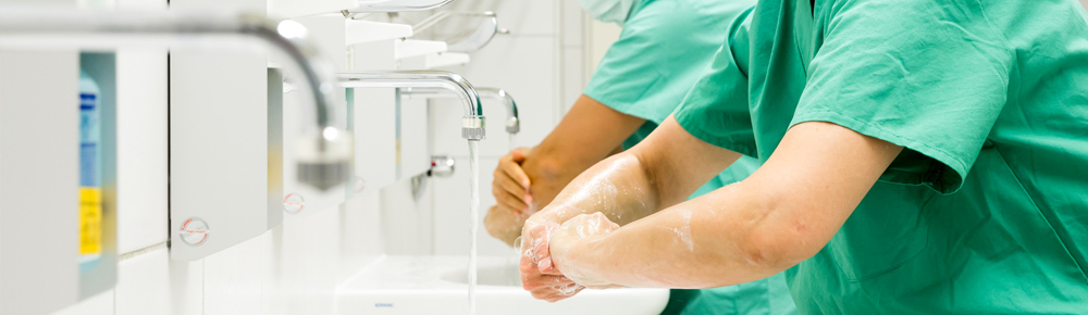 Ein wesentlicher Übertragungsweg für unter Uumständen krankmachende Erreger sind unsere Hände. Deshalb hilft gute Händehygiene Infektionen zu vermeiden. Gründliches Händewaschen reduziert die Keimzahl auf den Händen erheblich und ist für den häuslichen Bereich ausreichend. Bei Besuchen im Krankenhaus jedoch empfehlen wir die Durchführung einer hygienischen Händedesinfektion.