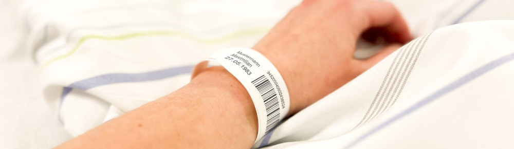 Um Verwechslungen zu vermeiden, erhalten alle Patientinnen und Patienten bei der stationären Aufnahme oder einer ambulaten Operation für die Dauer des Aufenthalts ein Patientenarmband. Darauf stehen zur sicheren Identifikation der Name und das Geburtsdatum. Es dient dazu, bei allen Behandlungsschritten Ihre Identität feststellen zu können und das Risiko von Verwechslungen auszuschließen. Die Armbänder werden aus leichtem, weichem Material hergestellt, sind allergologisch und toxikologisch vollkommen unbedenklich.