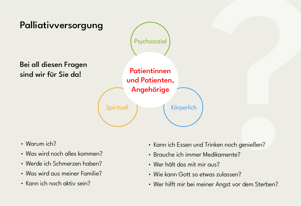 - Spirituelle und psychosoziale Begleitung, vor allem in der Sterbephase